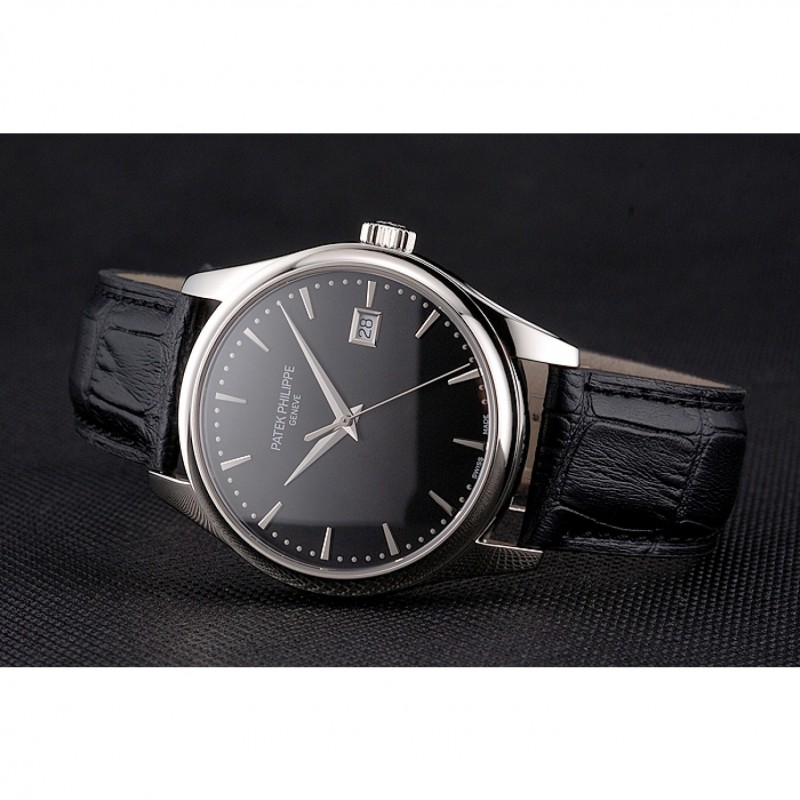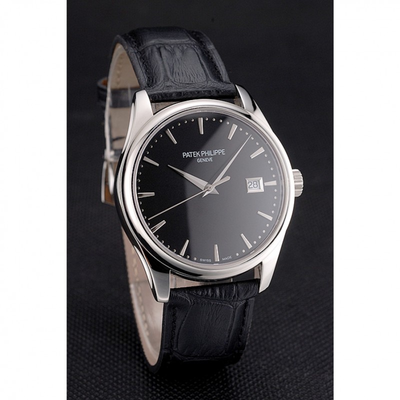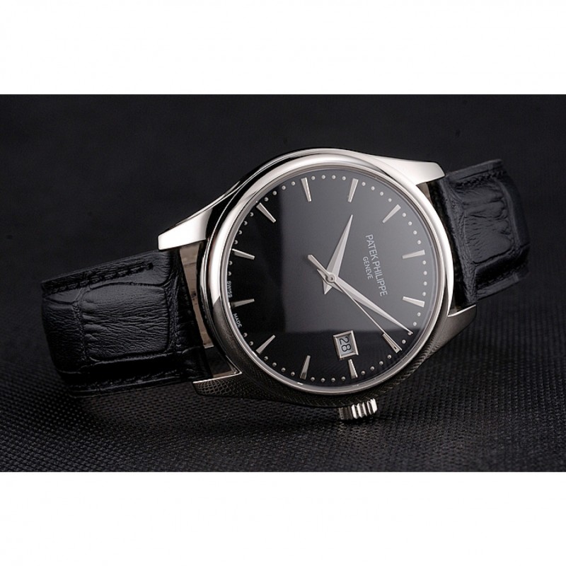 pulsera: calor Patek Philippe Geneve en relieve de cocodrilo negro correa de cuero con acero inoxidable pulido gancho hebilla de cierre