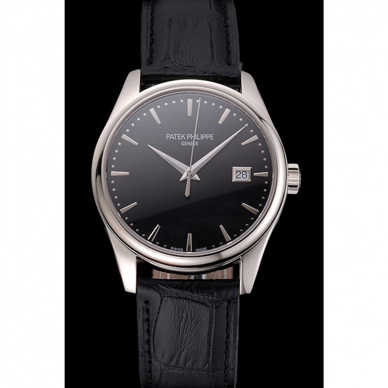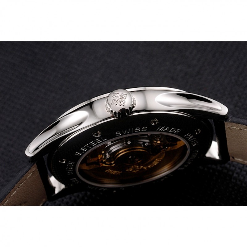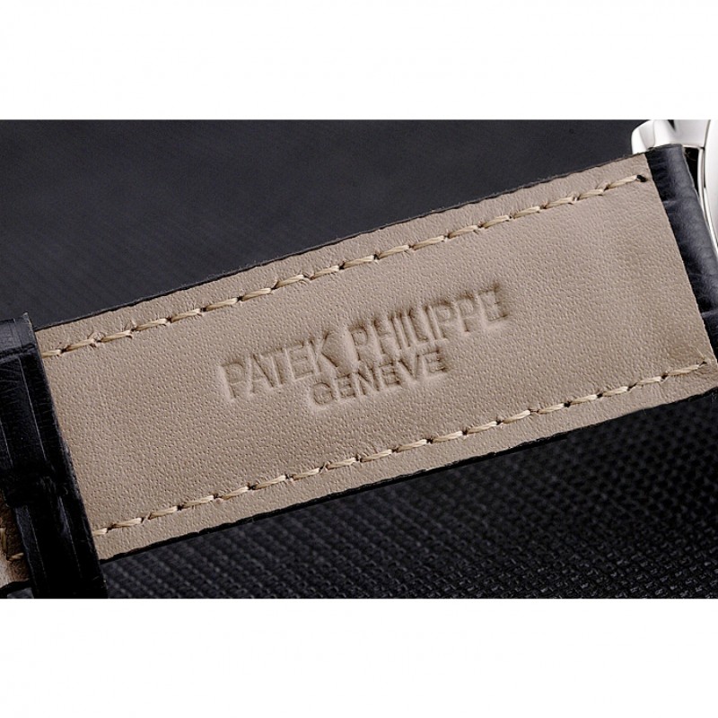 Suizo Patek Philippe Negro Dial correa de cuero caja de acero inoxidable Negro
