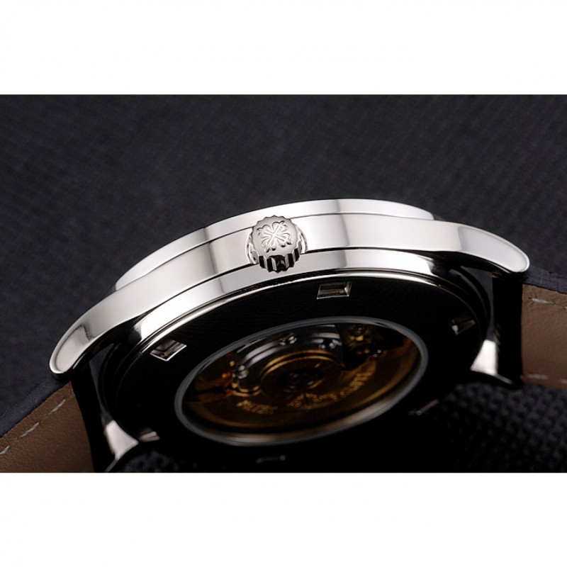 pulsera:logo y el calor Patek Philippe en relieve correa de cuero con acero inoxidable pulido gancho hebilla de cierre