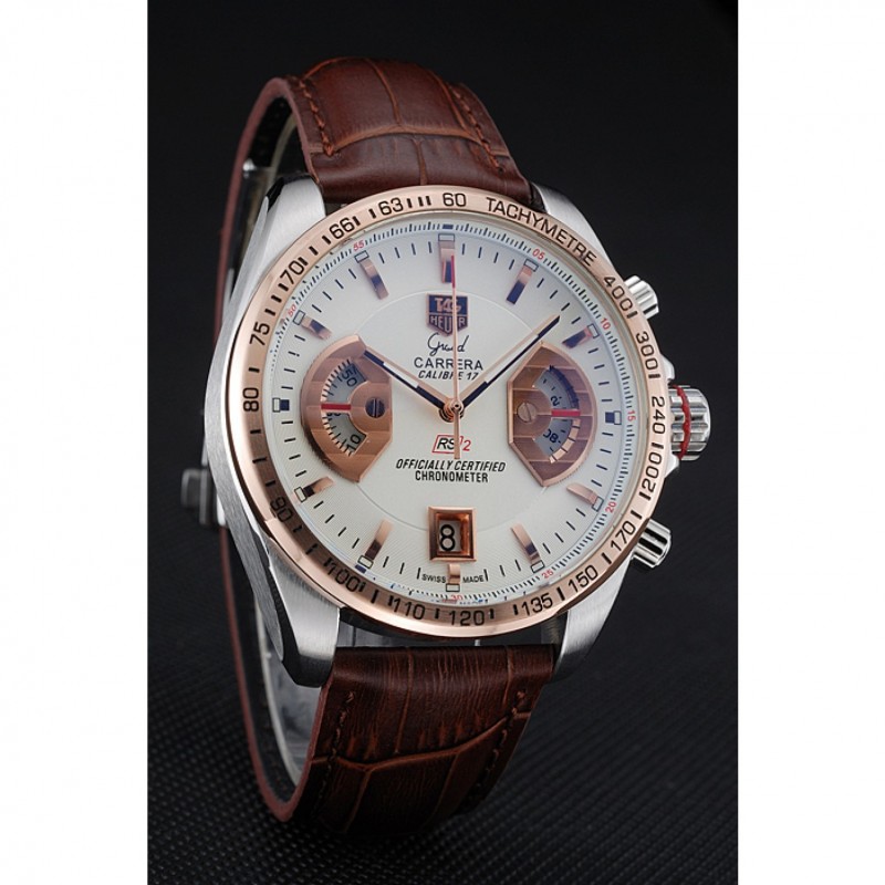 El «Tag Heuer Carrera» es una de las colecciones más icónicas de la relojería suiza, y ahora puedes disfrutar de una réplica de alta calidad del modelo Posh 5000 que combina diseño, funcionalidad y sofisticación. Esta réplica destaca por su movimiento de cuarzo japonés Miyota, garantizando precisión y durabilidad en cada tic. Con una caja cepillada de acero inoxidable y un bisel rose-chapado en oro con taquímetro, este reloj se convierte en una pieza elegante y resistente para el uso diario. La corona también está chapada en oro rosa, adornada con el logo Heuer y detalles que recuerdan la exclusividad de la marca.